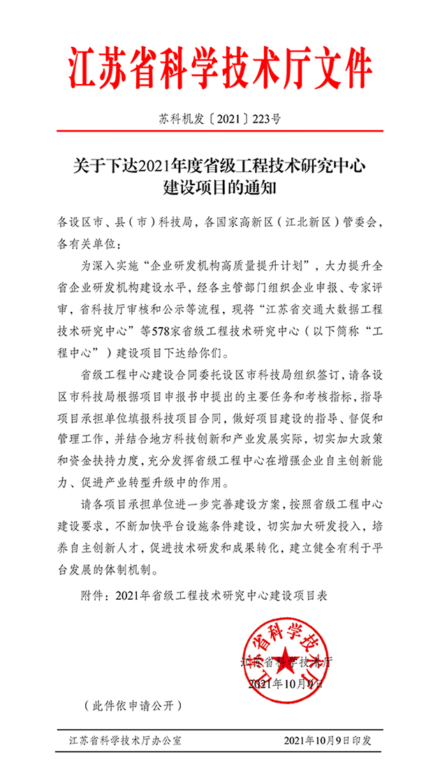 2021年度江蘇省工程技術研究中心