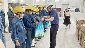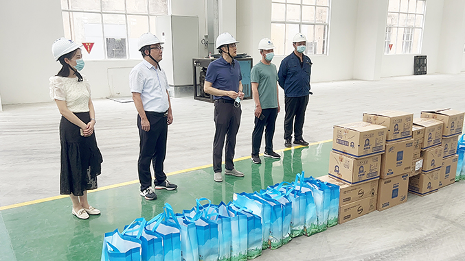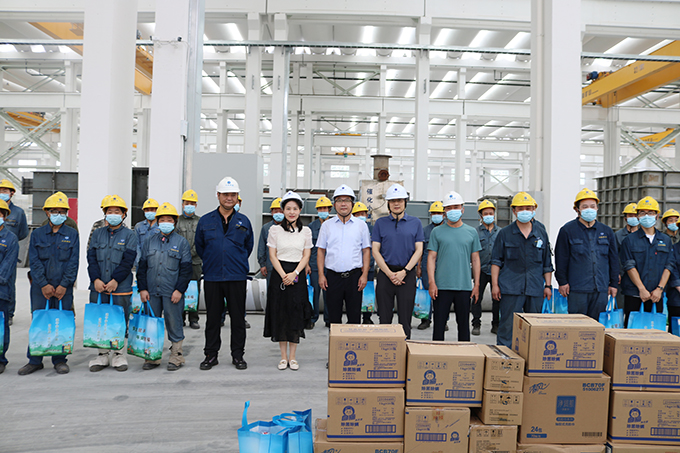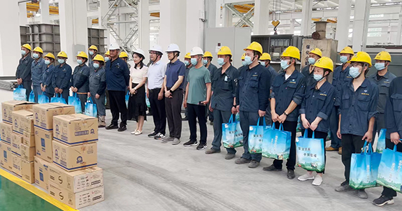 宜興市總工會黨組書記、副主席邱遠遠詳細(xì)詢問了車間職工的工作情況,對大家“冒酷暑、戰(zhàn)高溫、守崗位”的工作態(tài)度和昂揚向上的精神風(fēng)貌給予充分肯定,并為職工代表送上洗手液、沐浴露、花露水、洗臉巾、洗衣液等防暑用品,同時囑咐企業(yè)切實做好一線職工的防暑降溫工作,提供必要的后勤保障,合理安排作息時間,做好疫情防控和安全保護措施,確保生產(chǎn)工作平穩(wěn)、有序開展。
