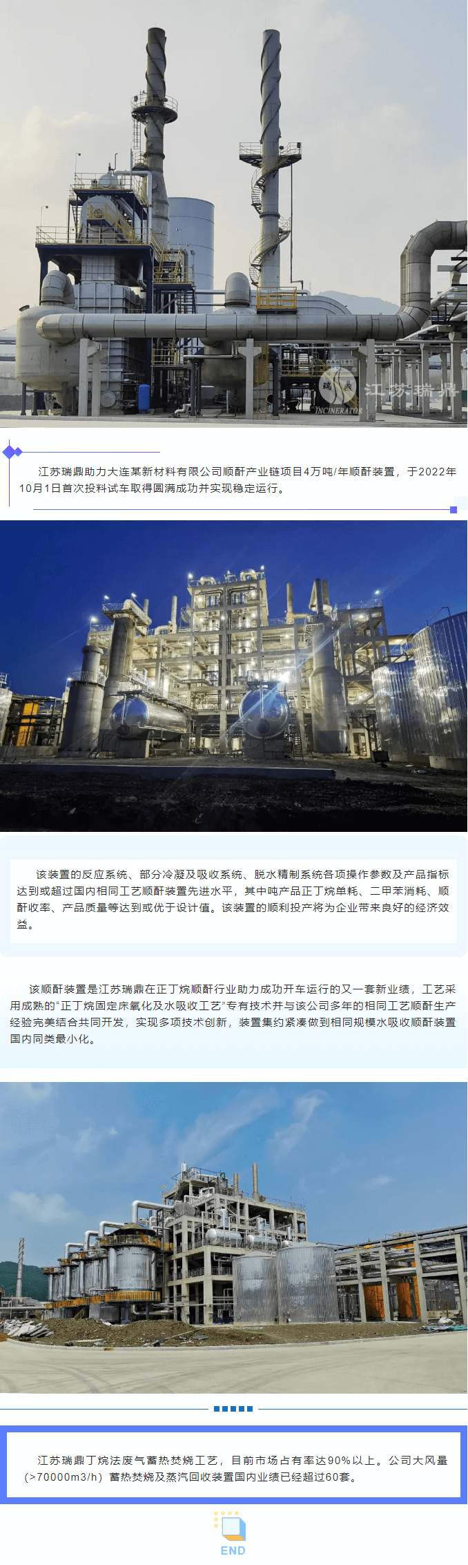 江蘇瑞鼎助力大連某新材料有限公司4萬噸順酐投料試車成功